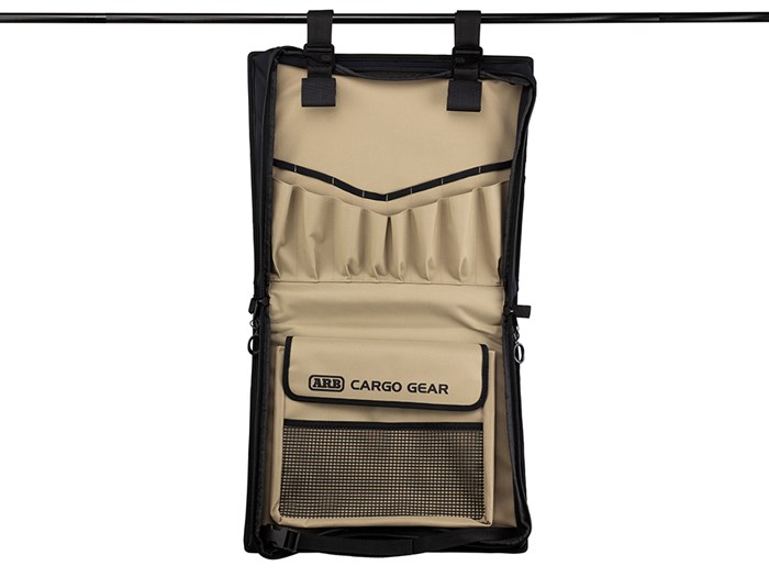 The convenient way to streamline your camp kitchen. With multiple sleeves for your utensils, a built-in internal pocket, an easy clip paper towel holder and outer rubber mesh pocket, the ARB Camp Kitchen Organiser is the perfect accessory to keep all your kitchen essentials in one place. Featuring a durable PVC outer shell with neoprene sides for flexibility, there are multiple mounting options including eyelets, hook loop straps and splines for fitting to a sail track (including the ARB Awning). This organiser is the ultimate tool for your kitchen on the road.