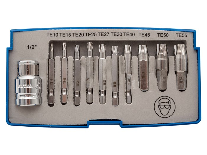 - 3 x Extractors with 10mm Hex drive Sizes – E45, E50, E55.