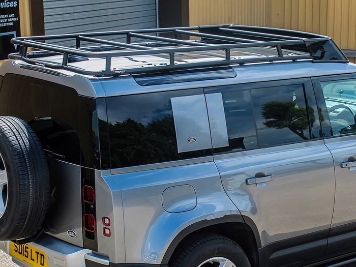 Requires the installation of roof rails (VPLER0177) to allow fitment. No modification to the vehicle is required and the rack does not obscure the rear-view camera. Top of rack is 125mm above roof skin, measured directly behind the rear-view camera. Provides clearance for the panoramic sunroof to both tilt and open fully.